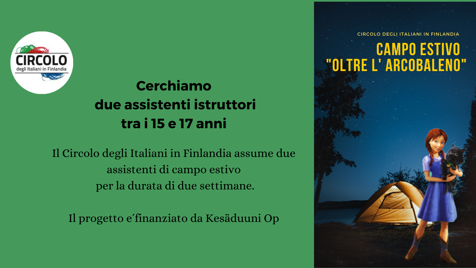 Cari soci e amici del Circolo, Il Circolo degli Italiani in Finlandia assume due assistenti di campo estivo di età… Continua a leggere